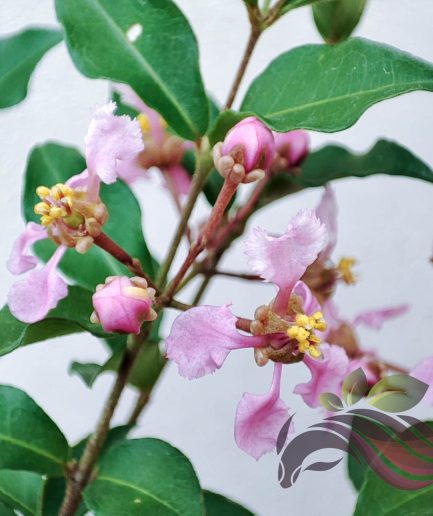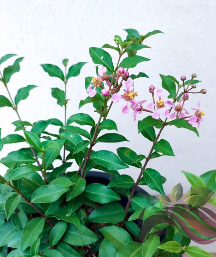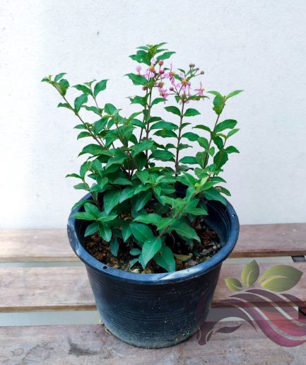 A medium shrub or small tree, able to grow up to about 5 – 10 m tall. Rounded to vase-shaped crown. Elliptical to oblong leaves, simple and opposite, measuring about 5 – 10 cm long. Flowers are either red, white, pink or purple in colour, grown in terminal clusters, panicles measuring about 5 – 20 cm long.