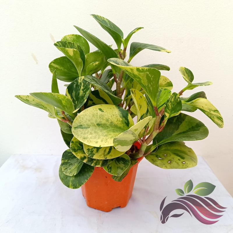 Peperomia obtusifolia ‘Variegata’ (Variegated Baby Rubber Plant) is a compact, easy-care houseplant featuring thick, succulent-like glossy leaves with creamy white and green marbled variegation. Growing up to 12 inches tall, this upright plant thrives in bright, indirect light and prefers moderate humidity.