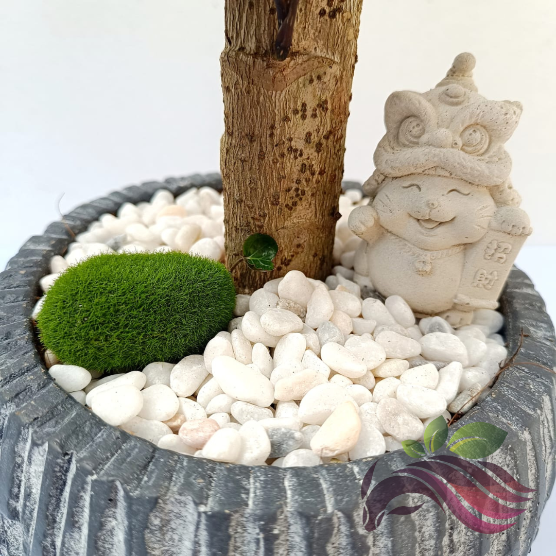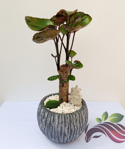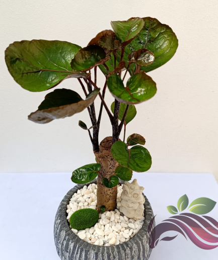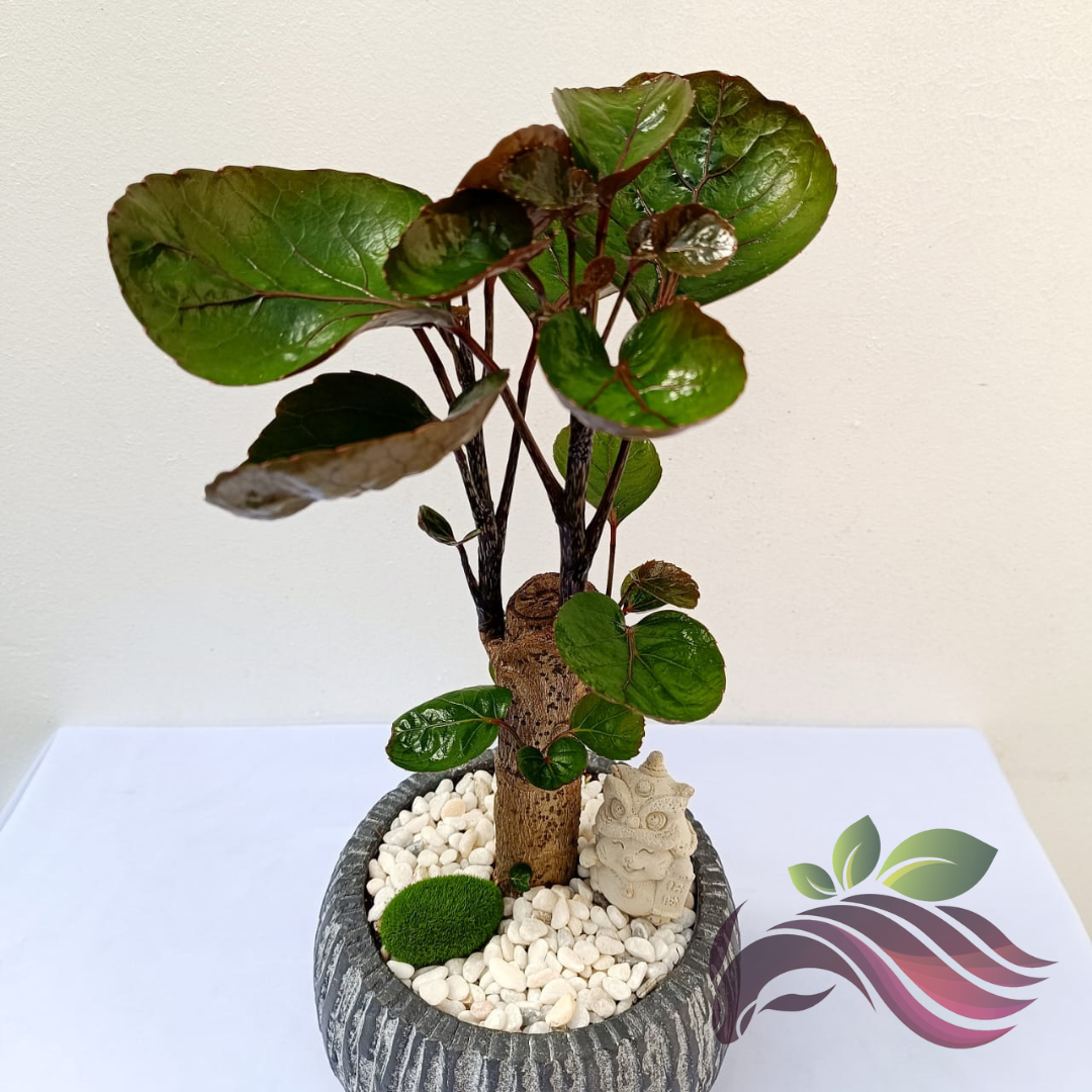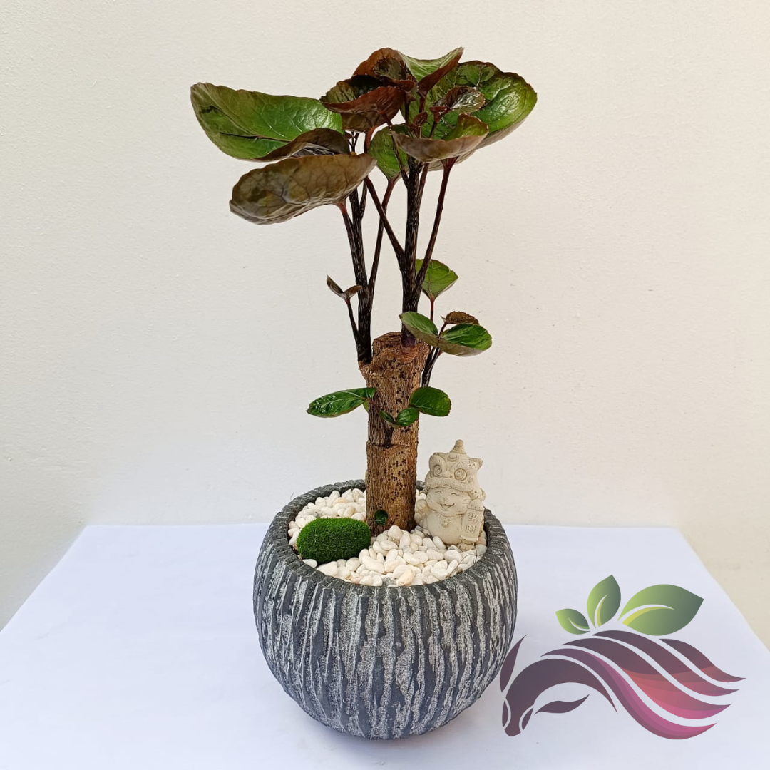 Polyscias Fabian One Head 金钱兜 钱多多 老庄圆叶福禄桐 圆叶福禄桐 Bonsai with Ceramic Pot