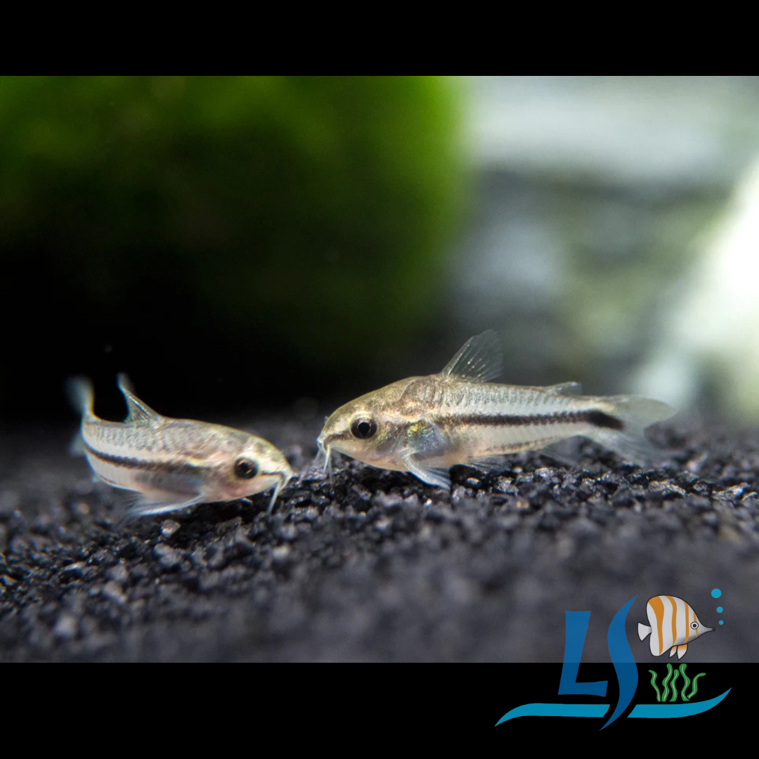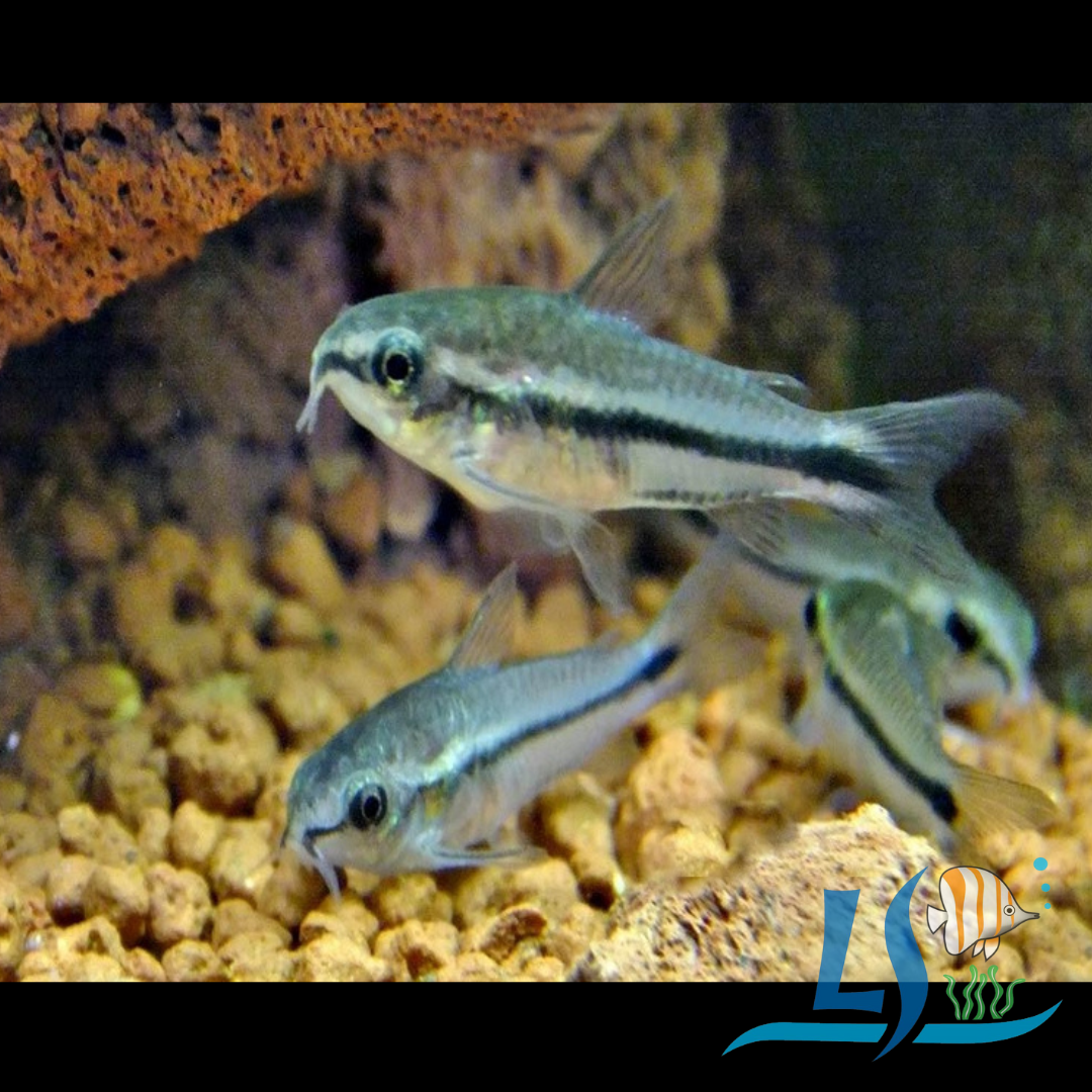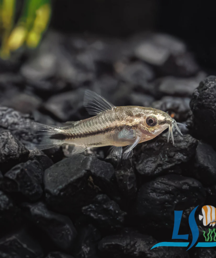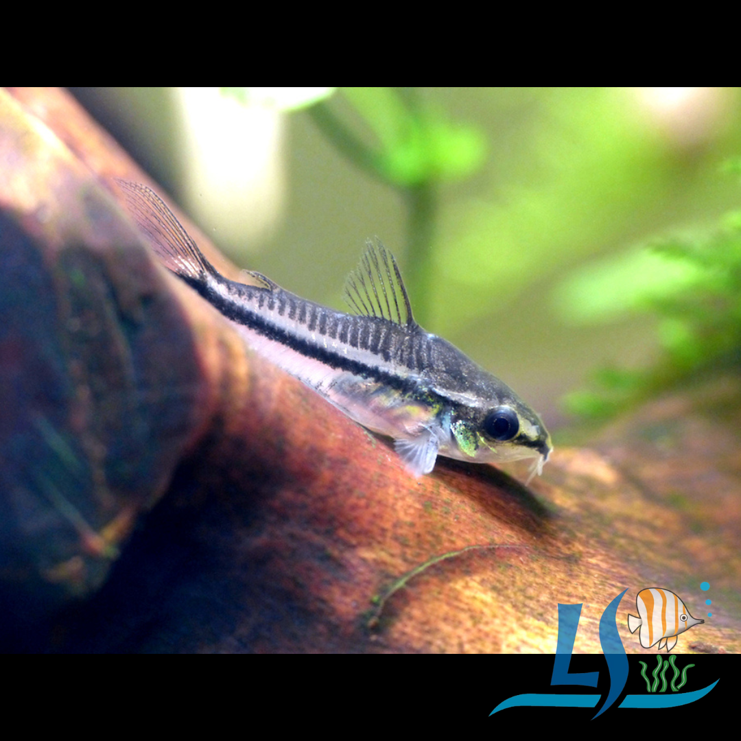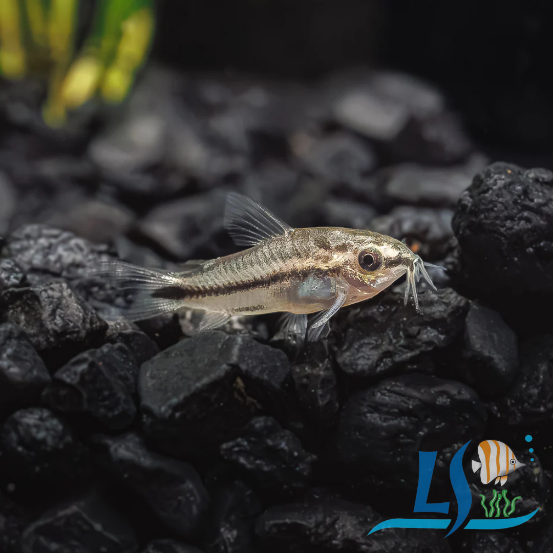 Pygmy Corydoras (Corydoras pygmaeus) are small, peaceful, schooling fish native to South America. They are known for their silver bodies, a prominent black stripe, and a midwater hovering habit, contrasting with most other corydoras species that are typically bottom dwellers.