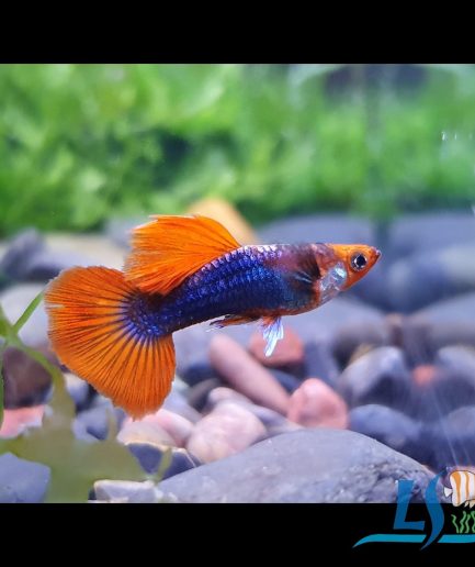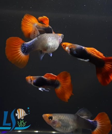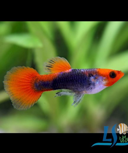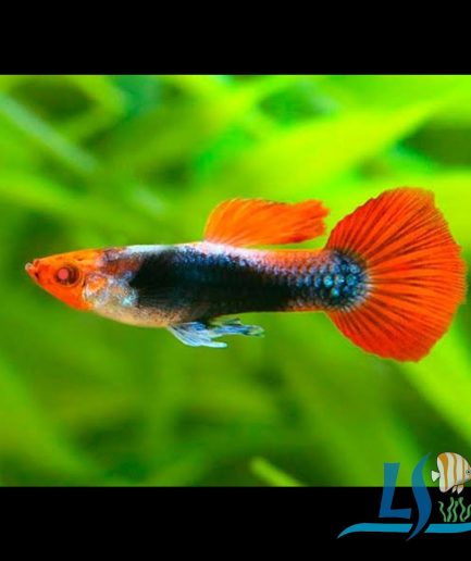 The Tuxedo Koi Guppy is one of the many unique varieties of Poecilia reticulata guppy developed through years of careful selective breeding. The Tuxedo Koi Guppy features a black body and red tail and nose.